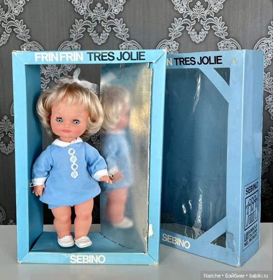 Почитала я ваше обсуждение про этих кукол, и стало мне интересно, а как же выглядел итальянский оригинал? И я нашла! Правда, на коробке надпись на французском, возможно, эта кукла делалась для французского рынка. И мне не удалось узнать, какое же было у нее фабричное имя.