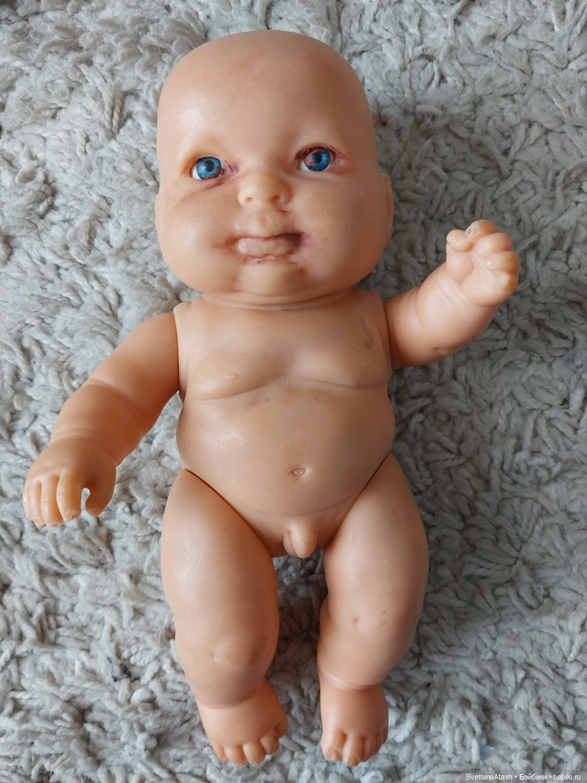 А мой фаворит — пупсик Анечка. Только она вряд ли «Весна», скорее всего китайчонок. У нас их несколько, я узнала по характерным положениям кистей рук. Вчера мне мама одной одноклассницы моего сына принесла как раз таких двух пупсиков в подарок, мальчика и девочку — грязных и замученных, каких я как раз и люблю 😀😀😀 отмыла, теперь одежду ждут.