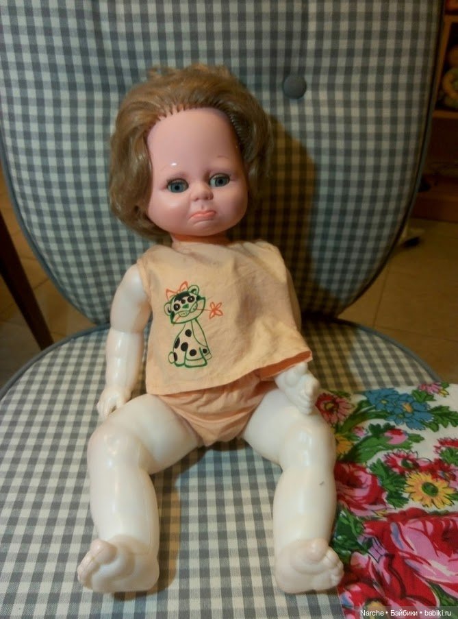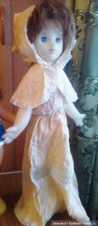 Да-да, будем ждать знатоков, куколка ну очень симпатичная, такая вся тоненькая, носик востренький))) славная, милая, без имени и фабрики пока. Я её ещё не раздевала, не переодевала. Всё думаю как опознают, найду в чем продавались и может такой же нарядик сошью.