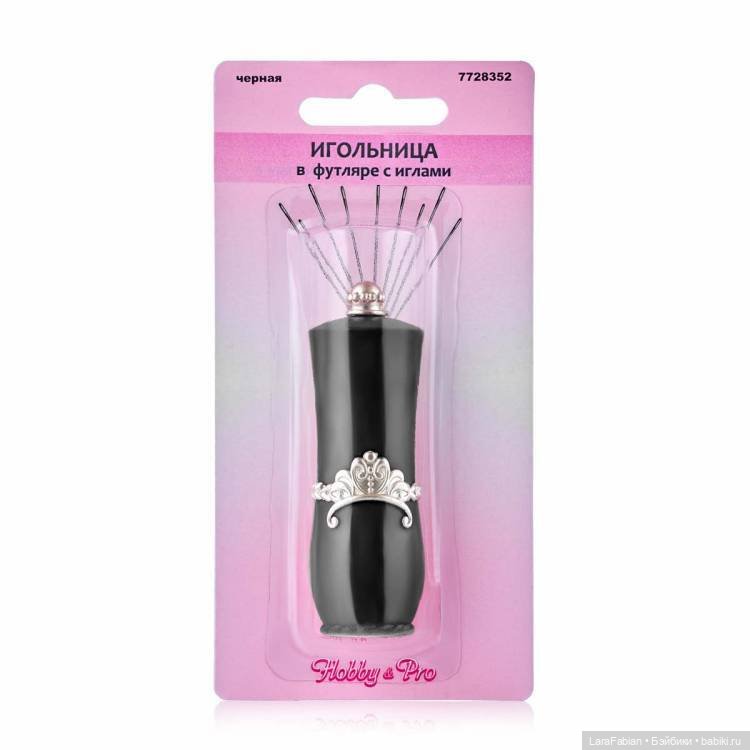 У меня игольница в тюбике из-под помады. Просто вымыла тюбик и вставила туда кусочек поролона. Компактно и безопасно — не выпадет и не потеряется.
