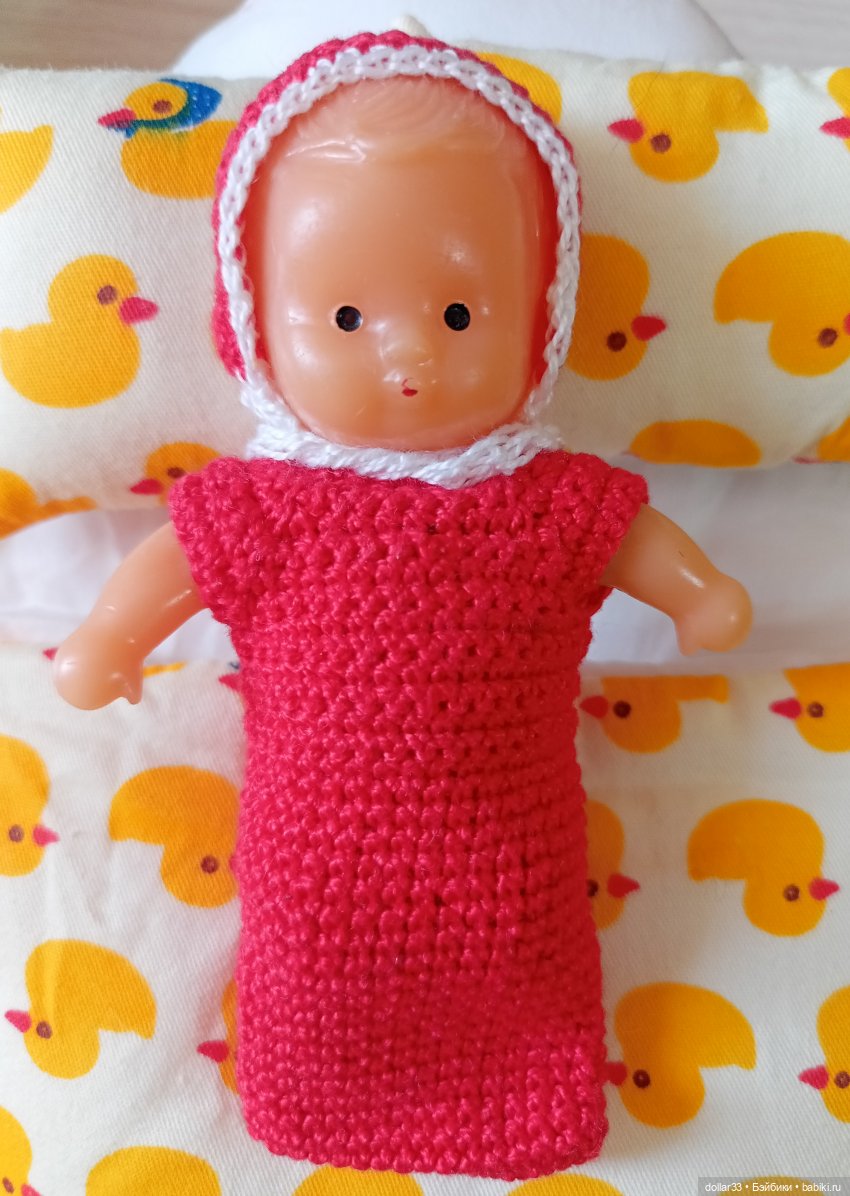 Нужно парня нарядить. Ни чего в нашем гардеробе ему не подошло по размеру. Ладно, значит нужно что то быстренько придумать. Связала свитер, сшила брючки. А тапочки вязаные у меня были, от вязаной куколки.