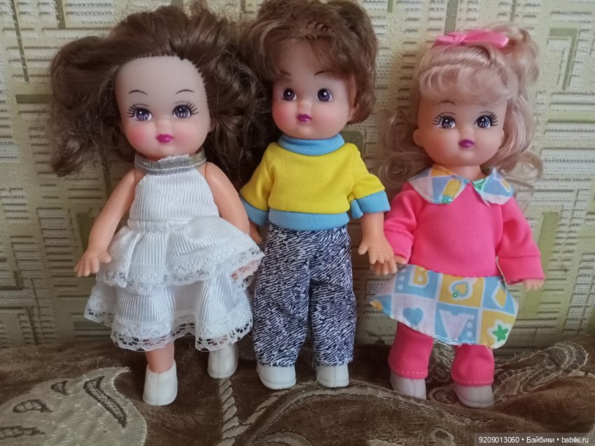 Когда то и они станут винтажными) как помните в 90-е были ляльки продавались в бело-розовых вязаных одежках и бело-голубых. Кто то продавался в пакетиках, кто то в корзинках. Обязательно с пищалкой — зайка, или котик. Практически все были с жёлтыми волосиками, редко попадались с коричневыми. Не знаю, может в других городах брюнетов было достаточно, но у нас все были с такими жёлтыми головушками. И вот нам посчастливилось с сестрой, у нас появилась куколка с кудрявыми коричневыми волосами! Она казалась необычной и самой красивой, так как в сочетании с синими глазами это и правда выглядело очень красиво!