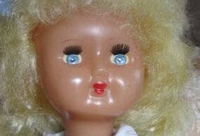 у советских кукол часто стёрты губы /не нашла ни одной фото с полностью стёртыми :)))/, ну примерно так (все фото из инета).
