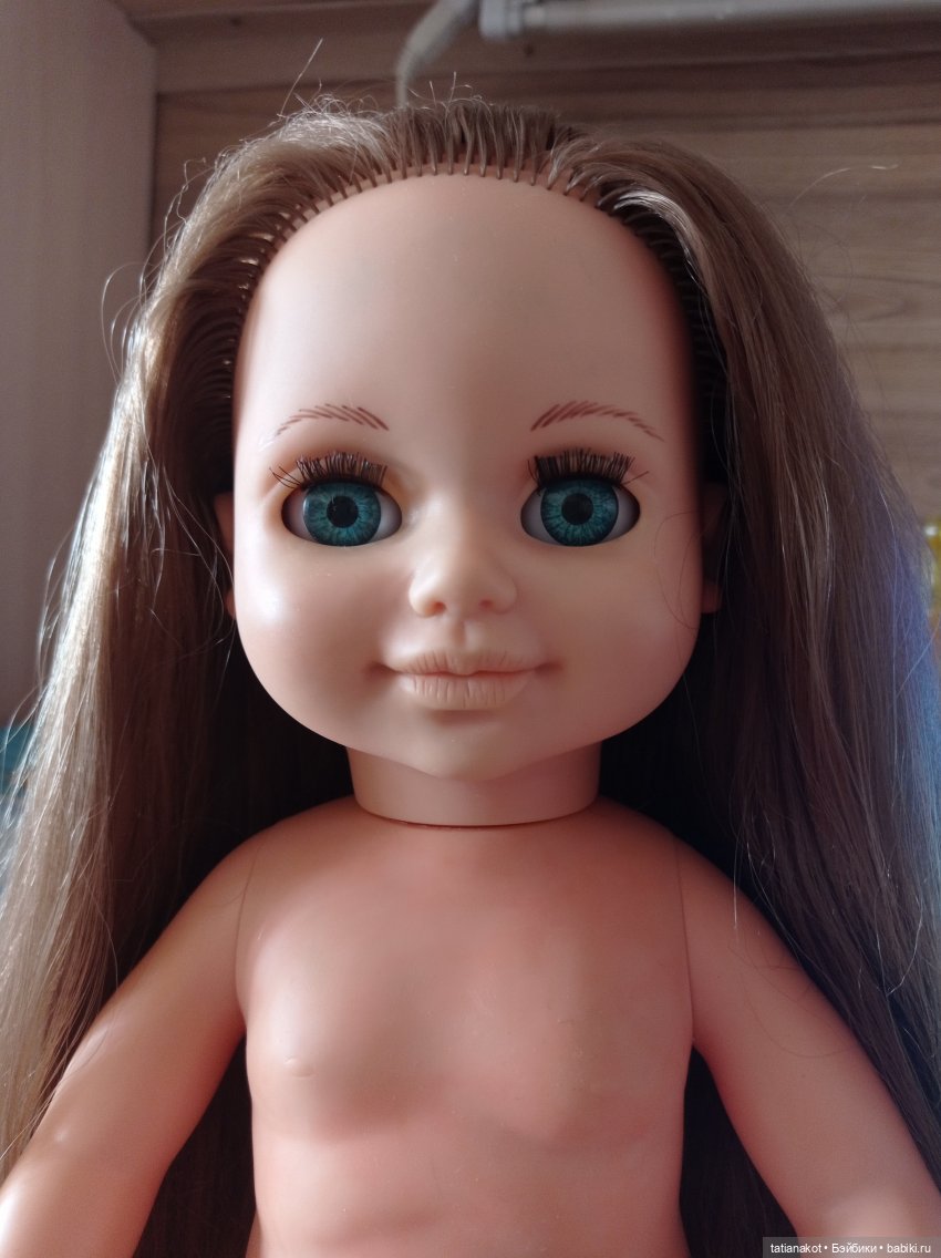 Собрала малышку, вставила глазки и причесала. Волосы после бальзама расчёсываются легко, если их ещё обработать паром.