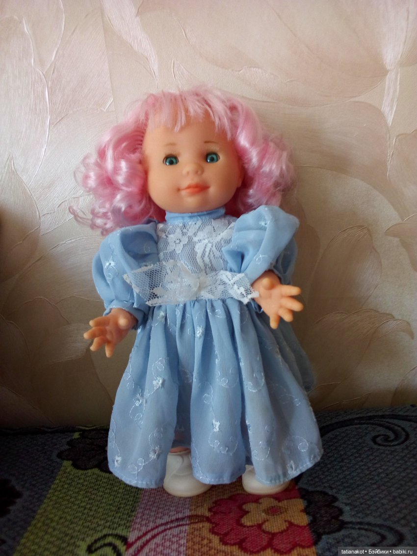 Перед купанием стала девочку разбирать, вынимать говорилку и случайно нажала. Услышала — ты моя подружка))) она умеет говорить три фразы. На затылке клеймо, значит девочку выпустили после 2011 года.