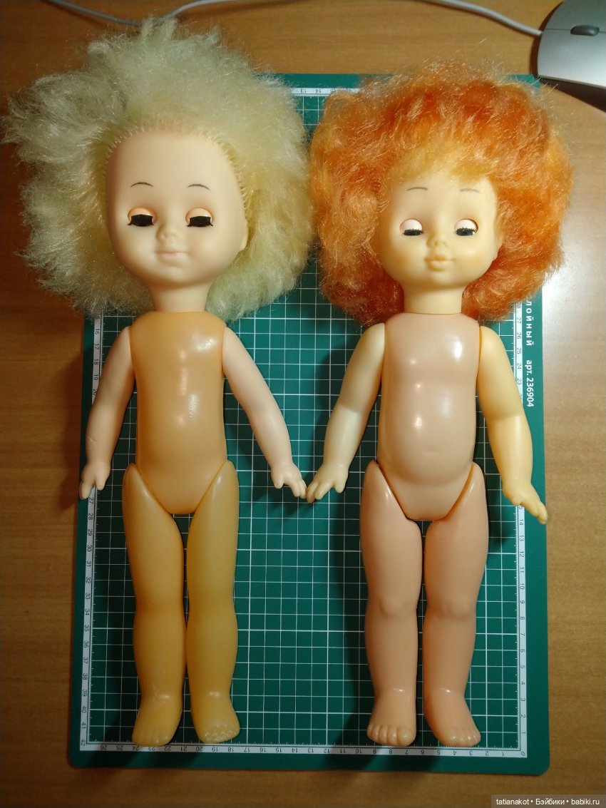 Когда вот так рядом — отличия видны, Леночка слева, Ася — справа. А еще у них голова крепится по-разному и диски на ручках разные.