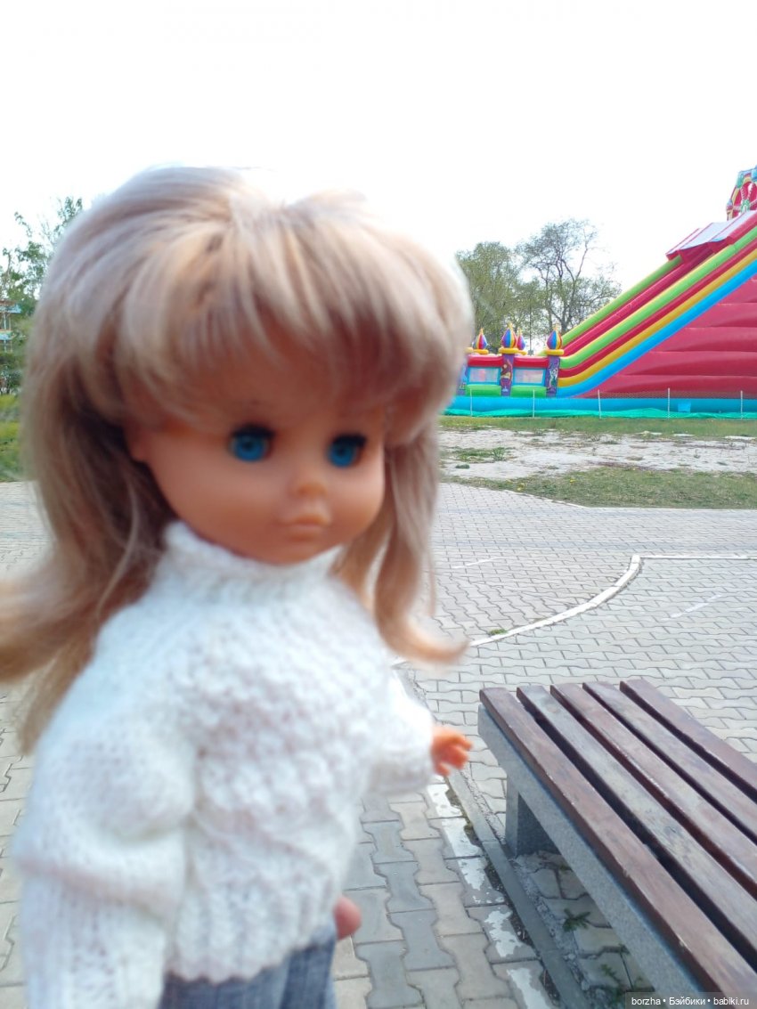 Пока кукла ехала ко мне, внутри меня что-то начало возмущаться. Волосы выпадают, если их расчесывать, а аутентичность куколки так хотелось сохранить. И, видимо, поостыв я начала задумываться о том, чтобы пока малышку оставить в покое. А тут еще приехала девочка, я ее помыла (ну не хранить же эту грязнулю в таком виде у себя в доме ).