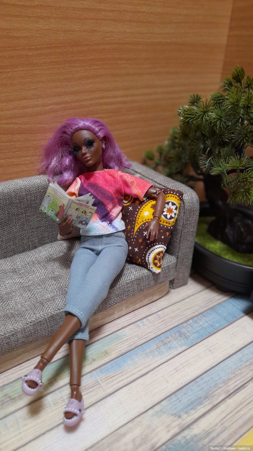 Поделюсь с вами моим новымсумашедшим творческим экспериментом. Вчера вечером села доделывать очередной диван 1/6. В процессе мне нужна была модель на посидеть, полежать)) Под руку попалась шоколадка BMR, пережившая уже мой один ООАК))