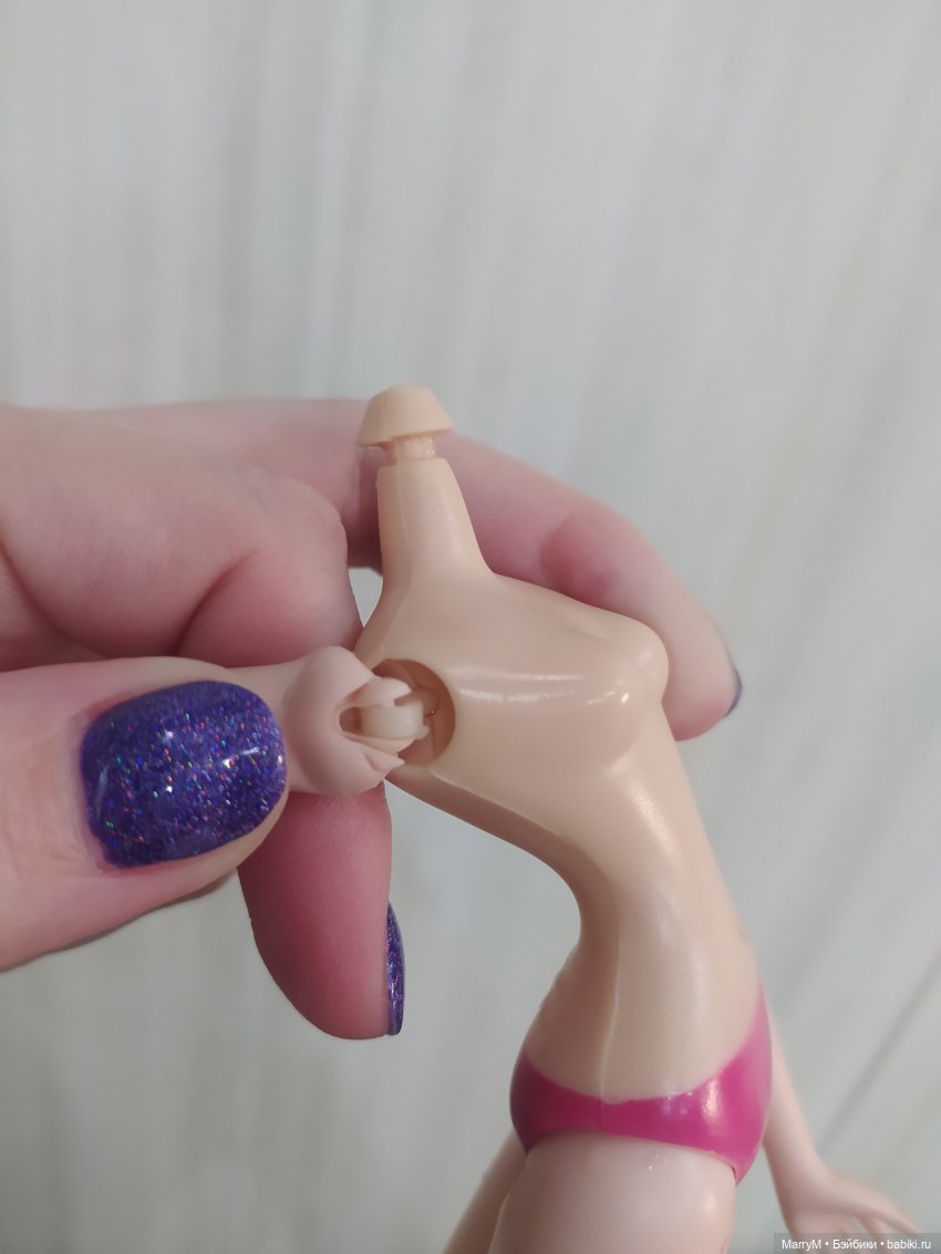 Да, ручка просто вставляется, но место крепления греть не надо! Только ручку, ту часть, которую будете надевать на крепление. Как узнать в какую сторону правильно повернуть крепление — отведите в сторону оставшуюся ручку куклы и подмышкой будет видно как оно расположено. Разверните крепление отсутствующей ручки точно так же. В горячей воде (я держала в кипятке, вскипятила в блюде, выключила и в этот крутой кипяток окунула) Резко встряхиваете руку, чтобы избавить от лишних капель воды и надеваете на крепление, прям до упора, чтобы плечико внутрь тела вошло. Затем нужно подождать, пока резина остынет. Если сразу начнёте поднимать руку, она выпадет.