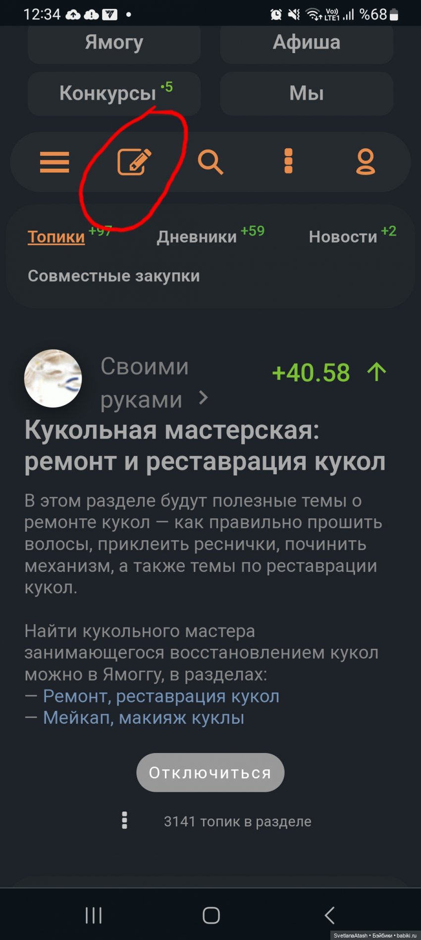Вот по поводу как разместить топик с телефона — я совсем ноль. С телефона я только звоню и захожу в вотсап. Остальное всё у меня в ноутбуке. В телефоне я просто ничего не вижу, могу и мимо пальцем ткнуть