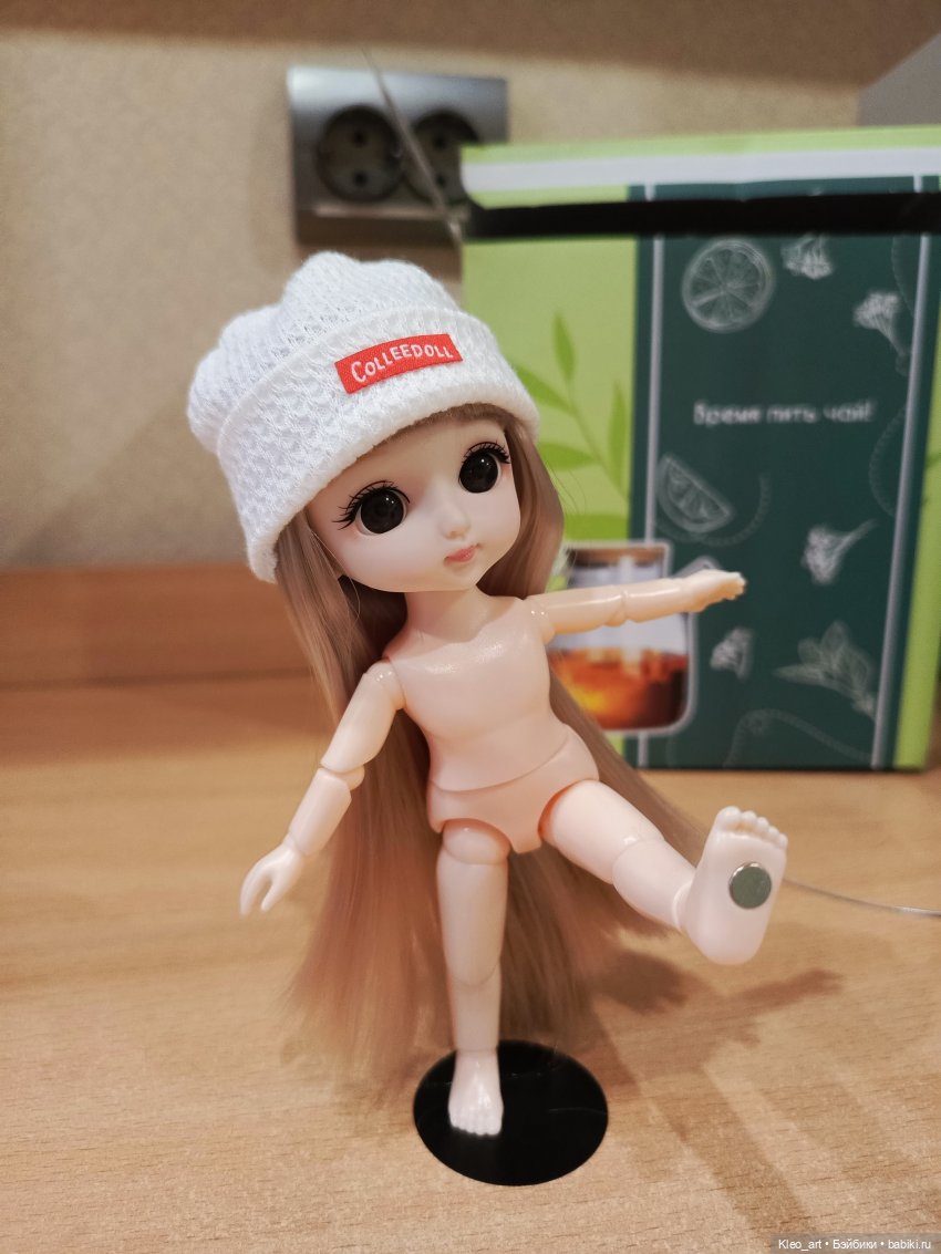 А еще в прошлом топике вы спрашивали в чем разница этих кукол по цене. У меня было немного баболек, и вроде бы классные куколки, удобный размер, шарнирные, казалось бы идеальный вариант, но мне немного не нравилось их тело точнее нижняя часть и животик, да понятно что это же по задумке ребенок маленький а у деток такое строение нет у них как таковой талии. А тут на ягодном нашла куколку за 1480р. Посмотрела фото оказалось тельце немного другое, талией да ещё и шарнир а талии, магнитики в ступнях в комплекте пластинка металлическая в качестве подставки. Вот такое чудо приехало