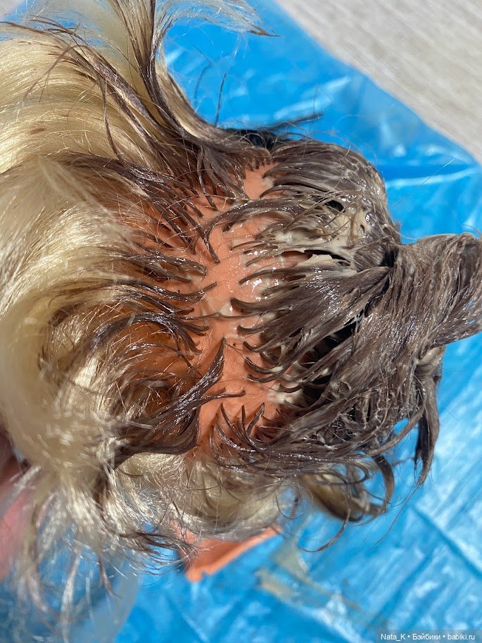 Хотя на ютубе видела видео как девушка красила волосы прямо на кукле. Но делать это надо очень осторожно. Закрыть лицо куколки и следить чтобы краситель не тек на личико. Ну и потом куколку оставляют в подвешенном вниз головой состоянии, чтобы краситель не запачкал лицо и тело.