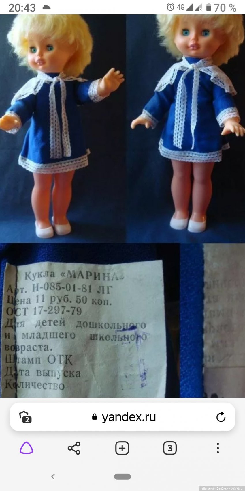 И ещё одна куколка от Елены yana1508 Ленигрушка. Вот только я никак не могу найти как зовут и в чём продавались такие куклы. Реснички — нарисованы. не вставные.
