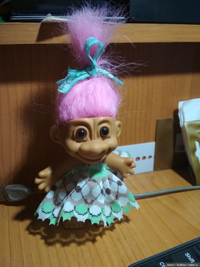 Следующий малыш тролль, его мне тоже отдали. Такие игрушки пользовались популярностью в 90-е. У моей младшей сестры такие были. Сейчас в музее уже целая семейка поселилась)