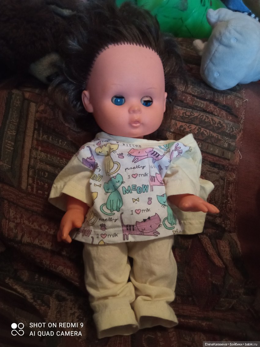 Наша первая пациентка) прибыла из ваших посылочек. У меня такие пупсики ассоциируются с 90-ми. У одной девочки во дворе были двойняшки такие. Она ими особо не играла, говорила что неудобно их переодевать, ручки-ножки в стороны расставлены и не двигаются. А мне они нравились и сейчас тоже им очень рада)