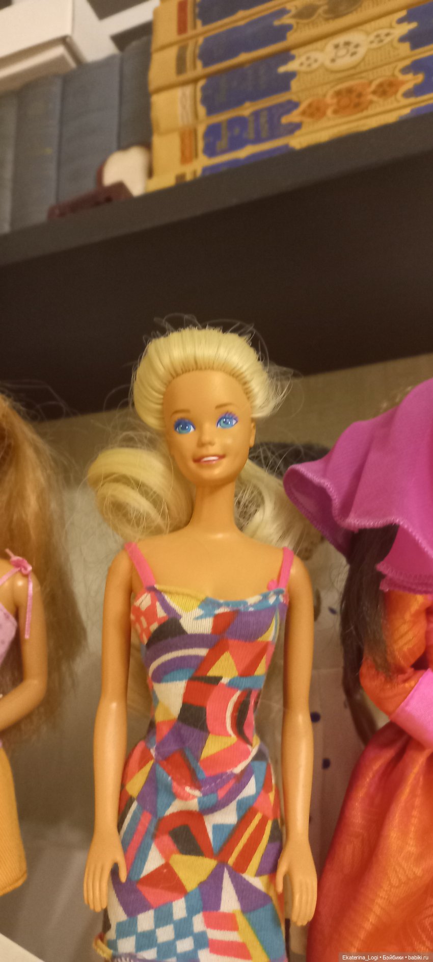 Платье скорее всего не заводское, кто то сам шил в те года, (у меня в детстве подруга была, мама ее шила куклам Барби подобные платья) край обработан как мелким зигзагом, у фирменных оверлок внутренний другой, у подделок вообще края не обработаны в одежде.