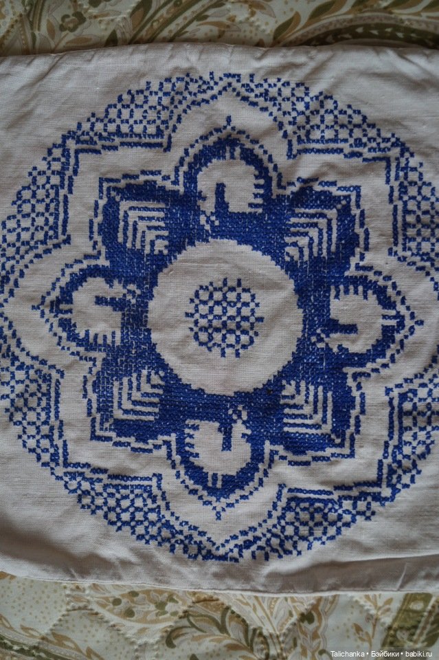 Я очень благодарна мужу, что и в хобби поддерживает, да ещё и помогает в лечении. А мама всегда с удовольствием берётся за вышивку. Мне нравится слушать её рассказы-воспоминания, о том, как мама ей купила первый набор для вышивки. Это было в 1957 году, маме 6 лет исполнилось. А у них в соседях жила семья с двумя девочками и у них родственники жили в каком-то большом городе, часто посылали посылки. Девочкам присылали много всего для вышивки — канву, мулине, пяльца, готовые наборы с рисунком, по которому можно сразу вышивать без канвы. И видимо у них было этого добра так много, что девочки не успевали вышивать. Вот бабушка (мамина мама) и купила у них набор. До сих пор у нас хранится наволочка на думочку, которую мама в 6 лет вышила.