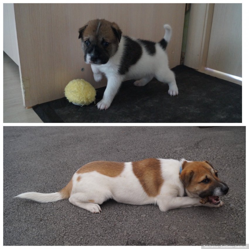 Тотошка наш к 4-м месяцам вырос уже вот до такого размера. Я впервые наблюдала за тем, как растут не по дням, а по часам! Утром пушистый комочек бегает, к вечеру уже головой ударяется в верхнюю ступеньку крыльца, к концу недели он уже детям до колена. В месяц такие лапки были высокие и он обо все спотыкался и ударялся головой, так как не успевал привыкать к своему размеру))