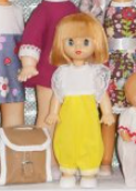 Так здорово — раз и новая куколка готова! Шить пока для неё ничего не шила. Я посмотрела в интернете, у Эбигейл дивное жёлтое платьице. Пока вот такое подобрала в нашем гардеробе.