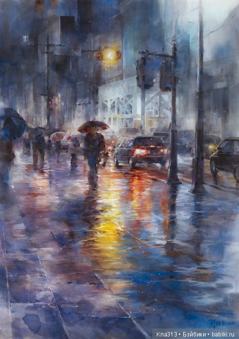 Талантливый художник Лин Чинг-Че (Lin Ching-Che) родился и живет в Тайбэе, столице острова Тайвань. Его безумно вдохновляют пасмурные городские улицы. Лин Чинг Че пишет картины акварелью. Молодой художник — уже признанный во всем мире акварелист. Его дождливые пейзажи многим нравятся, ведь от них веет приятной меланхолией и невероятным спокойствием. Вдохновляйтесь!