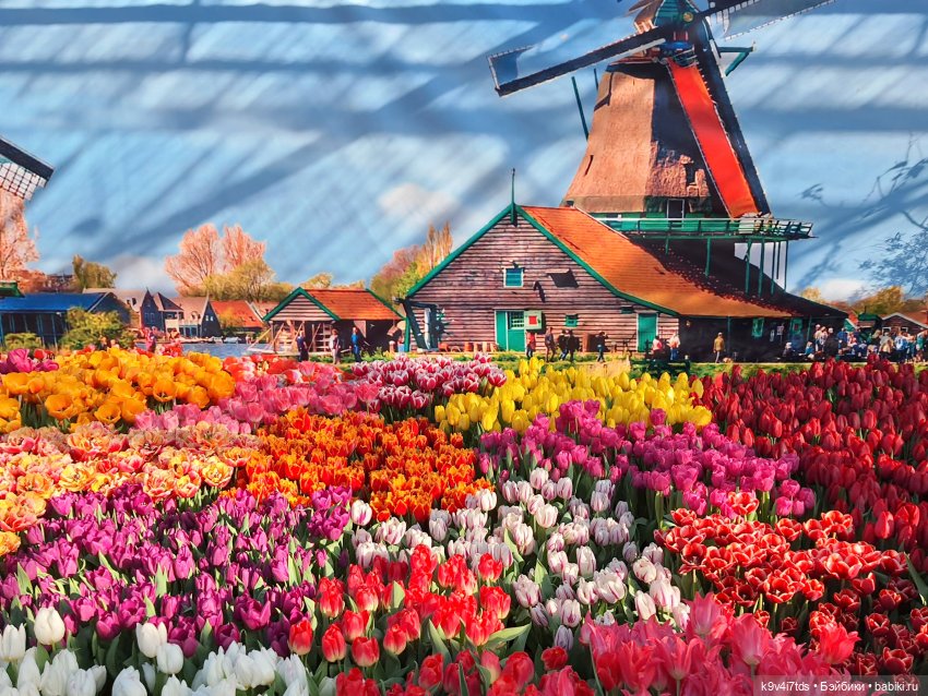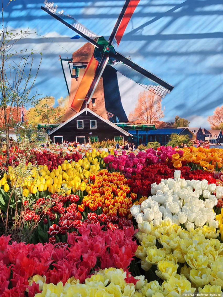 Голубое небо, мельницы и цветущие тюльпановые поля!