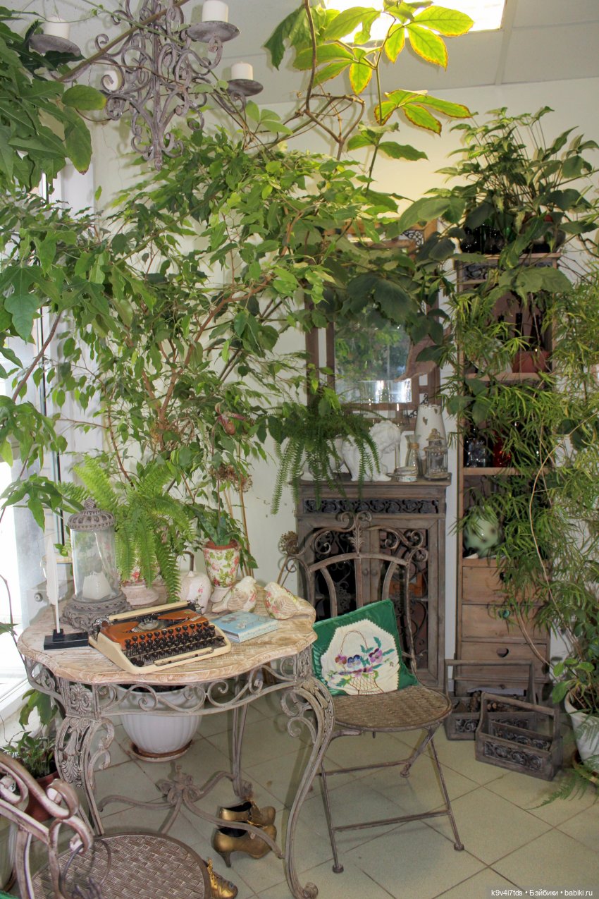 Как здорово придумано: не просто собрание цветов, а в посадки вписаны всякие декоративные элементы, даже домашние — чашки, фонари, пишущая машинка, скрипка… Такой уют, отдых. Неоднократно еще буду пересматривать эти фото!
