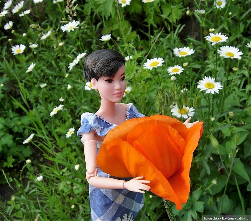 Юки нашла мак среди ромашек.