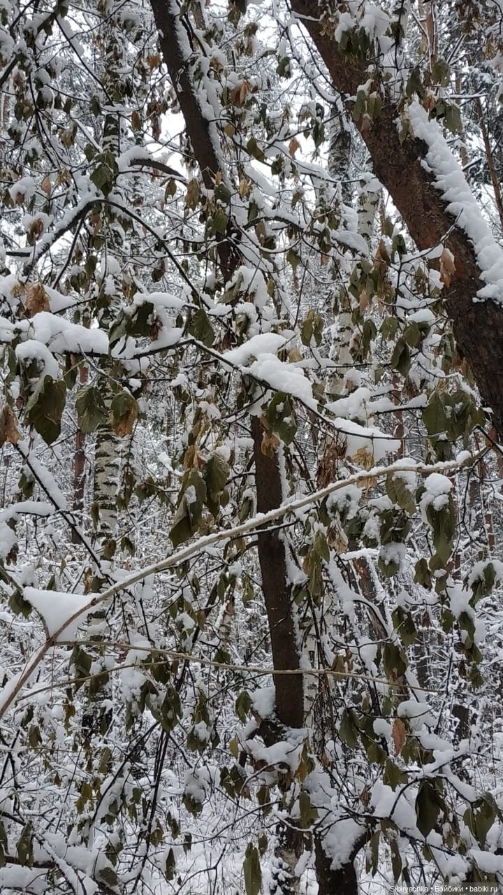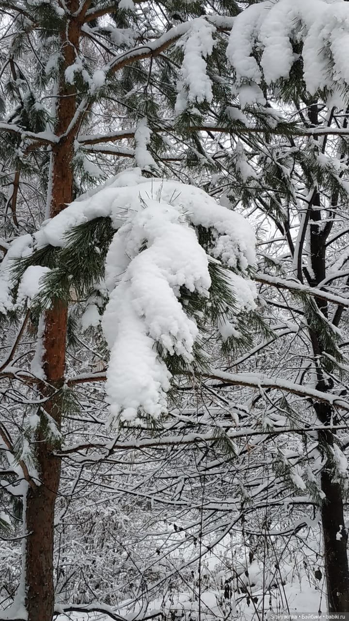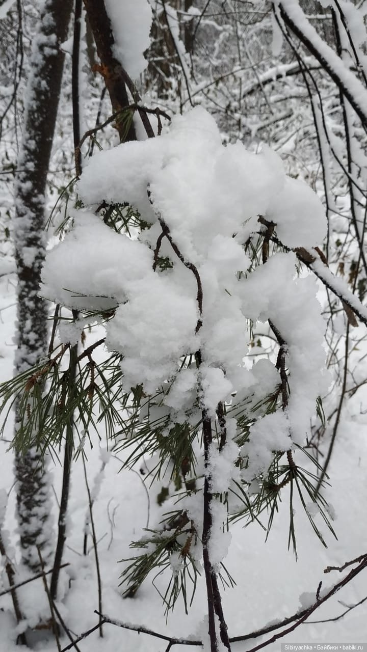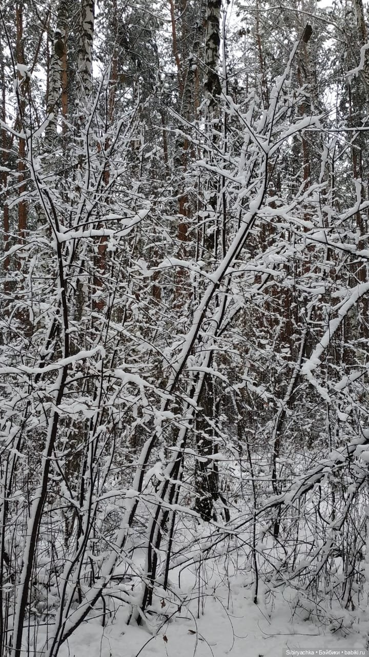Вчера у нас была оттепель, температура воздуха была около нуля, мелкий дождь чередовался с мокрым снегом. В результате таких погодных условий, нетипичных для ноября в Сибири, в лесу царила настоящая зимняя сказка. Все деревья стояли в белоснежных нарядах, а снег продолжал падать, укрывая землю мягким одеялом, под которым она будет теперь спать до весны. Дети и некоторые взрослые лепили снеговиков, играли в снежки, катались на санках.