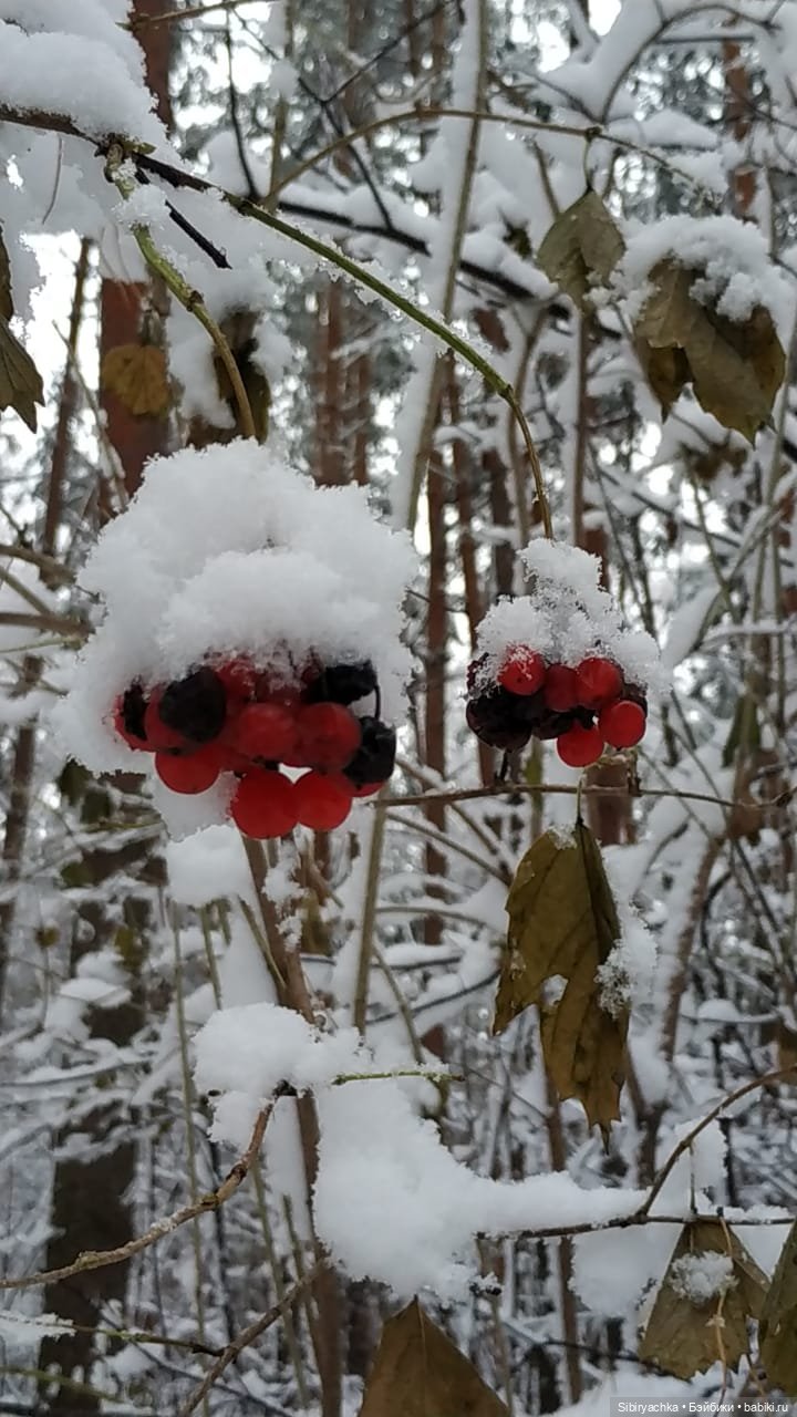 Мне нравятся ягоды под шапкой снега.