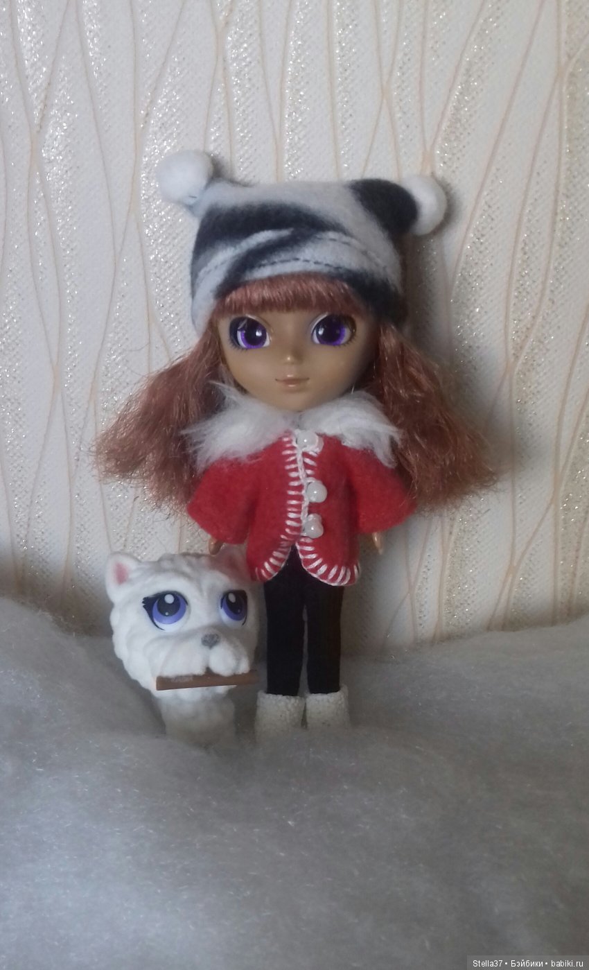Доброго времени суток, дорогие форумчанки! Моя история появления на сайте совсем не оригинальна: подрастает дочка, покупала ей кукол; потом вместе с ней искали в интернете, как сделать домики, одежду, обувь и т.д. На одном из каналов YouTube увидели Пуллип, очень понравились эти глазастики)) Решила дочке на Новый Год подарить. Но большие стоили очень дорого, а тут я увидела малышек (мой любимый размер))) и заказала для дочки Хацунэ Мику. Но… в процессе поиска я увидела ЕЁ. Смуглая кожа. фиалковые глаза, рыжеватые волосы… я просто влюбилась! У меня в детстве была мечта — чтобы у маленьких пупсиков (больших кукол я не жаловала) двигались ручки-ножки и были «настоящие» волосы. А тут просто воплощение детской мечты))) Я, конечно, убедила себя, что покупать куклу взрослой тетеньке глупо, несерьезно, и вообще как-то стыдно. Но забыть не смогла. И через 3 дня раздумий и метаний решила, «а почему бы и нет». Пусть и у меня будет подарок на новый год)) Знакомьтесь — в девичестве mini Pullip Dog. а сейчас Айми («красивая любовь»). Потом я попыталась пошить-повязать ей одежку.Но это, наверное, надо показывать уже в другой теме? Я, честно говоря, голову сломала, в какой раздел делать топики (может поэтому долго не писала)))
