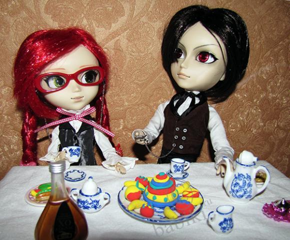 Честно говоря, не сразу заинтересовалась я этими куклами Пуллип. Потом постепенно стала к ним присматриваться и поняла, что они довольно милы и интересны. Но кого-то конкретного из них не просила душа. Пока я не увидела ИХ… Вот этой парочкой я и впечатлилась. И даже специально скачала и посмотрела аниме, по мотивам которого сделаны две эти куколки («Тёмный дворецкий»).