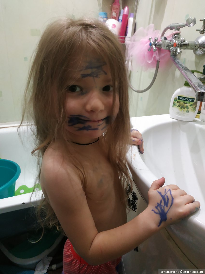 Пошла смотреть — чёрным перманентным маркером было разрисовано несколько светлых стен. Почему перманентный-то оказался под рукой, когда в доме моющихся полно, на разный вкус и цвет!