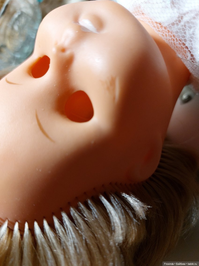 Появилась у меня вот такая кукла, над правой бровью на лбу небольшой дефект вроде царапины или вмятины. Видимо пытались что-то устранить. Можно его каким-то образом исправить, загладить/затереть… ликвидировать в общем?