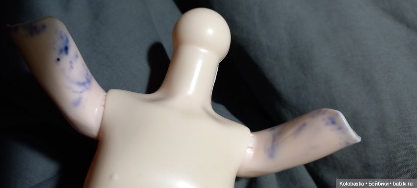 Суставы плечевые и бедренные не успели изменить цвет (а может, и не стали бы даже при более длительной обработке), суставы в руках и ногах так и остались светлыми — прошло несколько месяцев, ничего не изменилось.