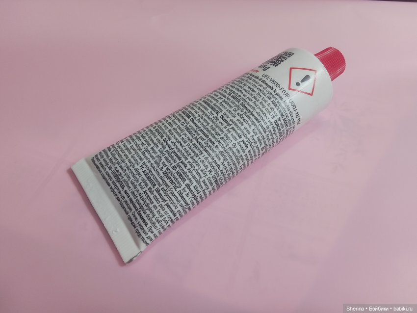 Точный состав отвердителя узнать не удалось (45+7+1=53% или 55+10+2=67%, а остальное где?!) даже после нескольких часов поисков. Пришлось предположить, что прочие добавки, которые делают из белого порошка ярко-малиновую пасту, инертны настолько, что не только не вредят отверждающим свойствам бензоилпероксида, но и не вредят его осветляющим свойствам.