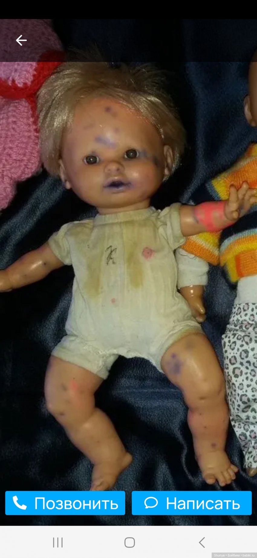 Ну и напоследок тельце Баболи — убрать серость с рук и ног удалось, теперь конечности желтоватые, сквозные красные пятна бледнеют, но камера телефона, как и зеркалка, не ловит нюансы.