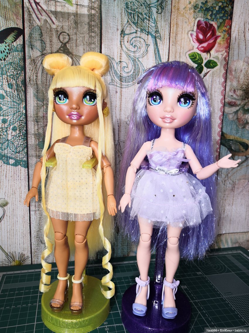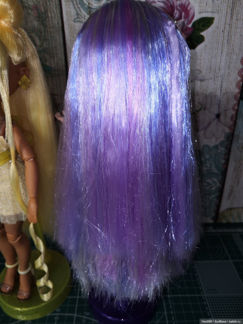 У Вайолет самые красивые волосы, там микс из нескольких оттенков сиреневого и серебристого. Очень густые и мягкие. Почти всех своих кукол продала, но этих наверное оставлю, двух точно.