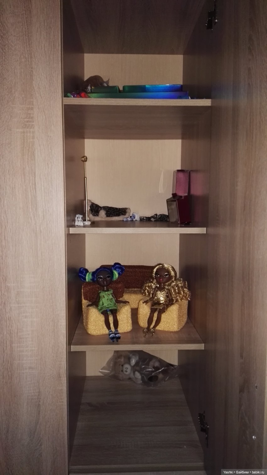 У нас это вынужденная мера. Посторонние все свои и всё понимают. А во всех моих делах привыкли участвовать коты. Порода очень активная. Поэтому открытое хранение кукол невозможно. Увы.