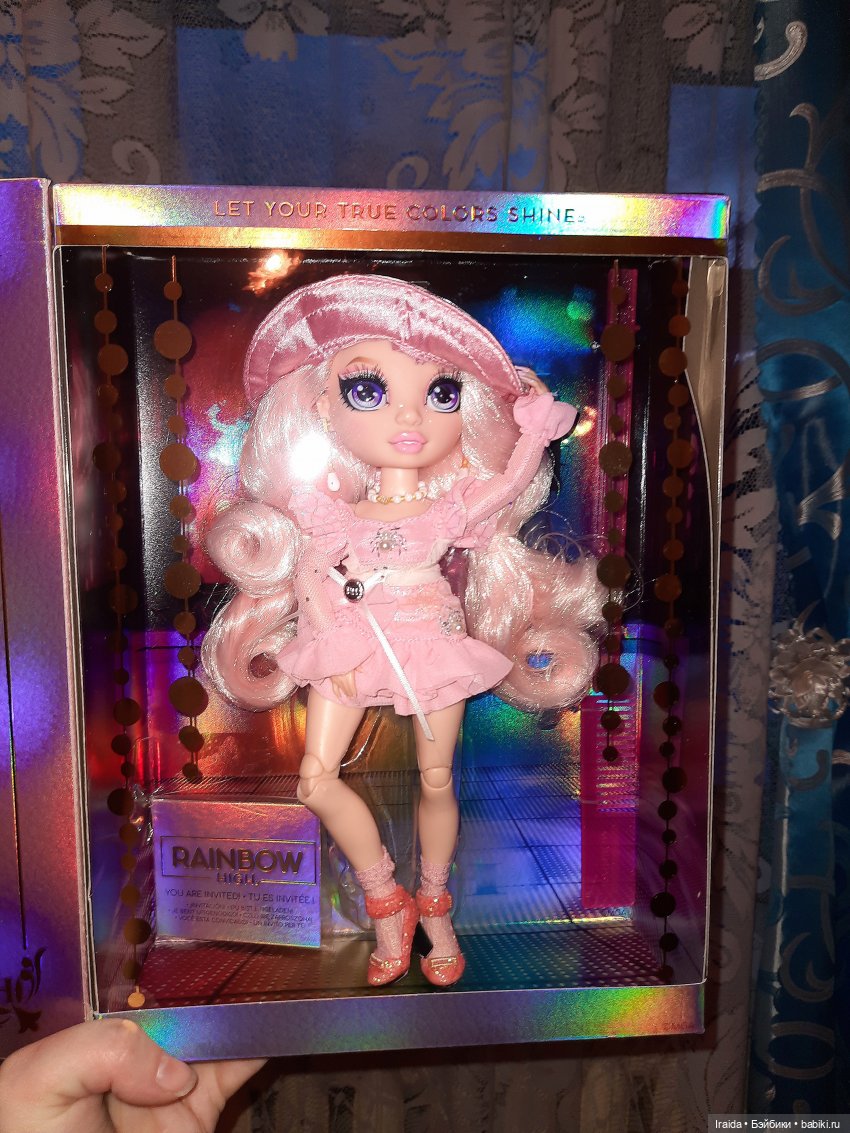 Всем доброй ночи!!! Знакомлю вас мои дорогие коллеги по хобби с новенькой Радужкой. У меня есть некоторое помешательство на розовом цвете — сразу предупреждаю — мало ли он кого-нибудь раздражает:)) у этой девочки его прям много:). Когда вышли первые описания этой серии в основном люди писали что хотели бы Оливку ( зеленая девочка) или же Викушу ( романтичная блондиночка с веснушками). А я вот как-то сразу Присциллу захотела. Такая она яркая, дерзкая. И розовый цвет ее такой ярко коралловый — чем -то фломастеры напоминает — прям я влюбилась:) Традиционное фото в коробочке.