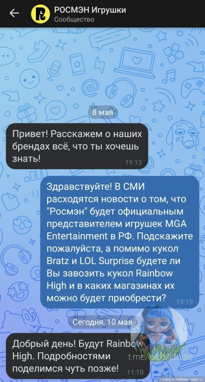 Ранее в СМИ уже появлялась информация о том, что холгдинг «РОСМЭН» заключил многомиллионную сделку с компанией MGA и будет поставлять кукол Bratz и L.O.L. Surprise! на территорию России, но про Рейнбоу информации не было.