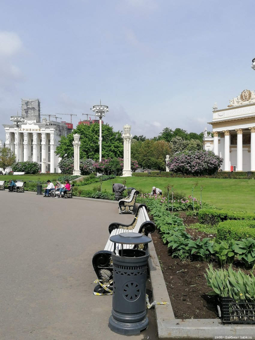 Сирень на ВДНХ повсюду! Очень красиво, ее много, она везде! Розы только сажают, бутонов нет.