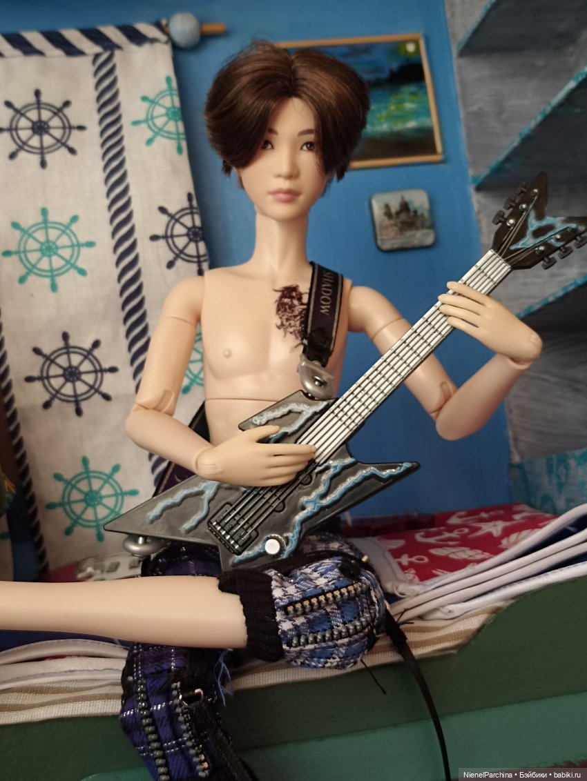 Вобщем Ума мне понравилась, но один косяк всё же был, и это выяснилось когда позировать с гитарой стали. Левая кисть с браком отливки, там нет шарнира, он сплавился с кистью. Досадно очень, она же гитаристка😕. Но всё же она великолепна, буду считать что в порыве страсти на концерте сломала запястье, но это ей не помешало в дальнейшем играть)))