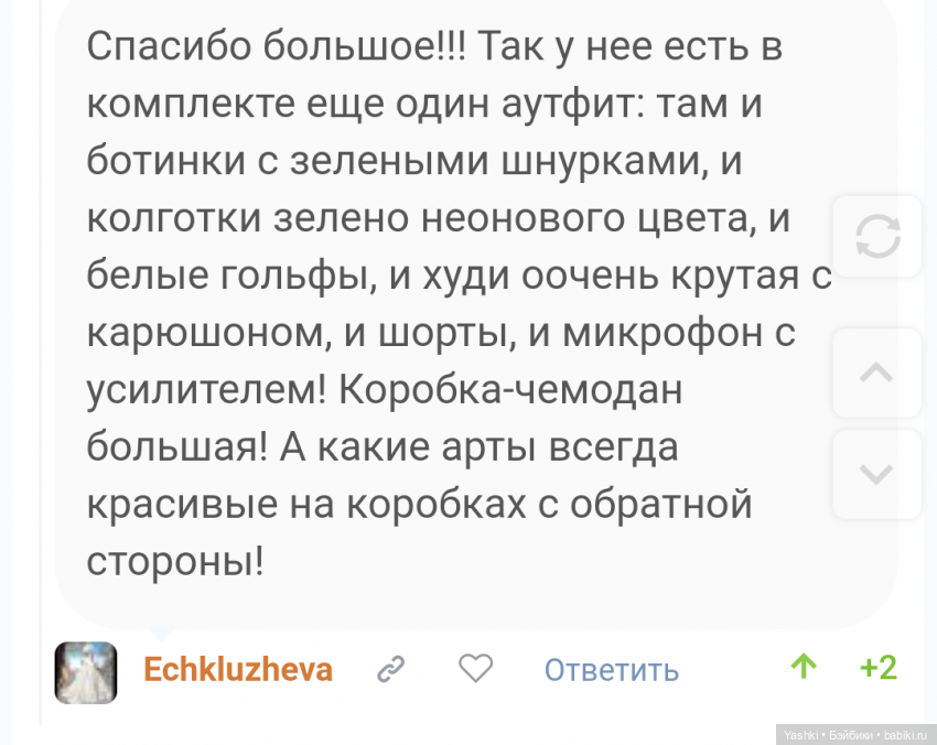 А для меня в любой кукле главное лицо. Себе говорю, нюд и лысую — люблю? Вот если да, то моё.