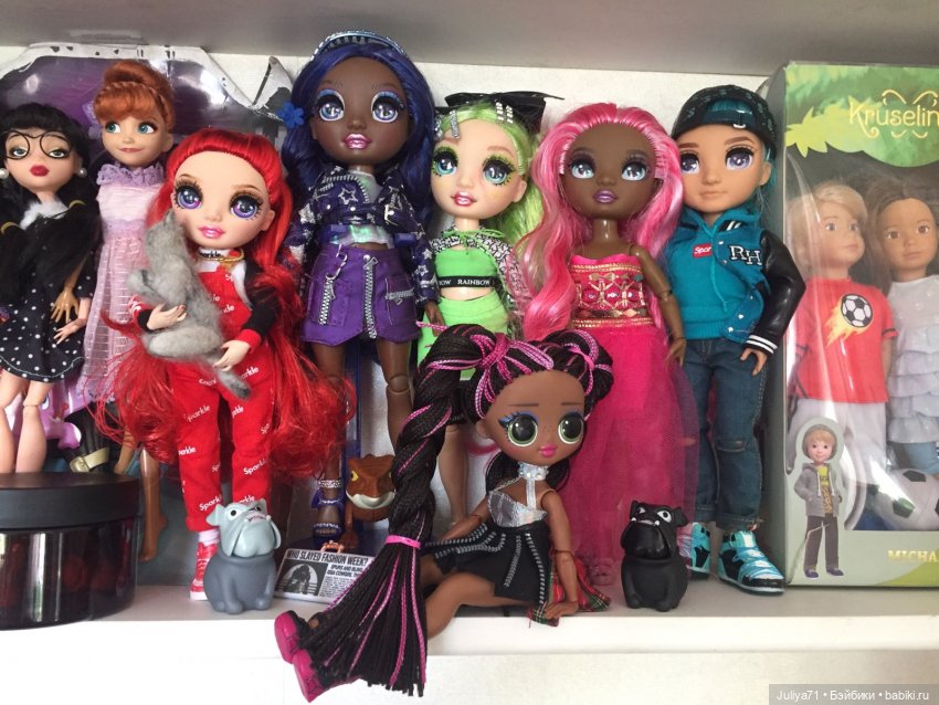 Яркие красивые девочки.Своей яркостью поднимают настроение. Уменя пока скромная радужная компания. Хочется очень ещё Ким и Амайю, малышку Поппи, ну и многих других