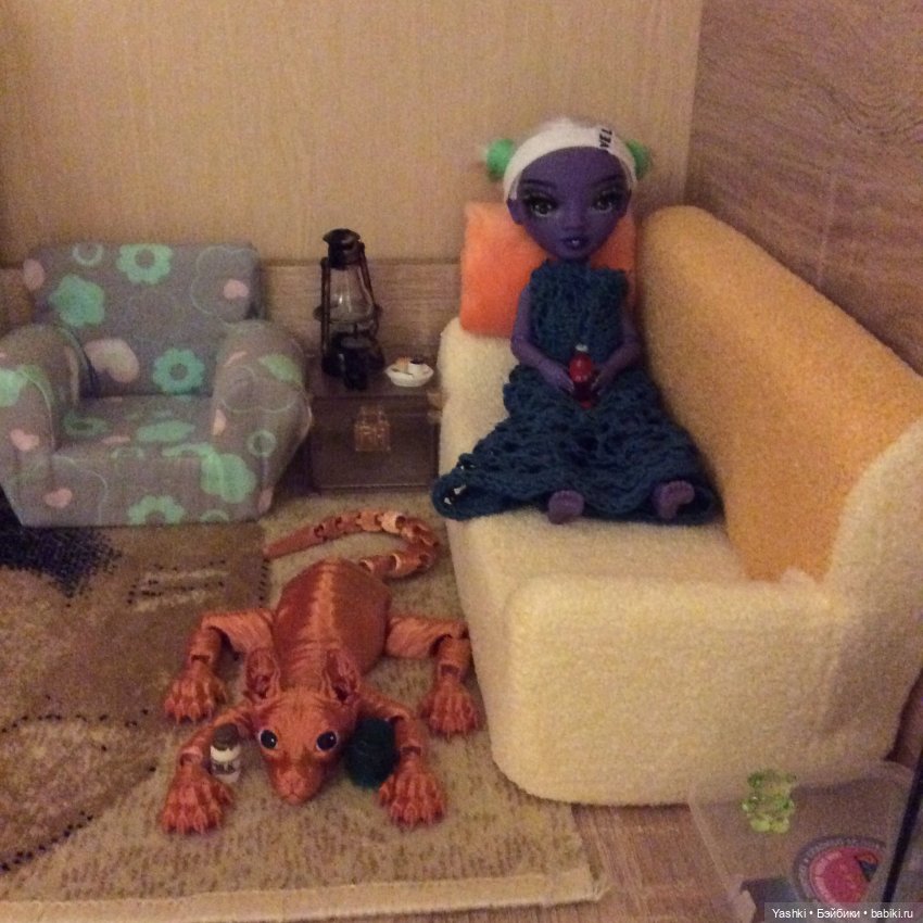 У тебя такой уютный дом! И питомец очень забавный, с хитренькими и добрыми глазами 💜 Словно ждёт, чтобы с ним поиграли 🥰