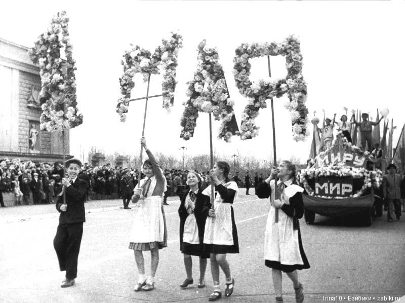 Помню первомайские демонстрации — цветы, знамена, шарики! И улыбки, смех, всюду музыка, танцы!