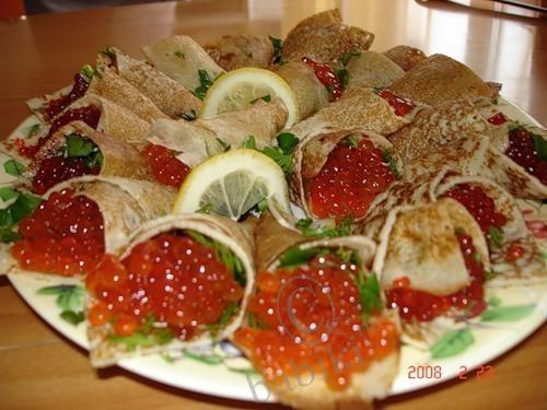 Но самое главное — это блины! Блин — символ солнца. Такой же круглый и горячий. С пылу с жару подаются они на стол. С маслом, со сметаной, с икрой, с грибами, с севрюжиной или осетриной — выбирай на любой вкус.