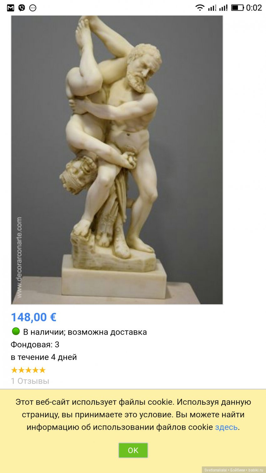Скульптура, статуэтка, тяжёлая, по виду мрамор, но может что-то другое.