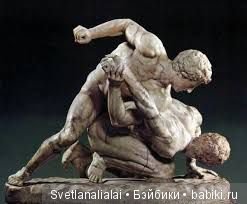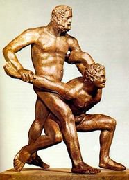 После олимпийских состязаний, для публики, как развлечение и эпилог, устраивали поединки борцов. Борцы выступали полностью обнаженными и были намазаны маслом.