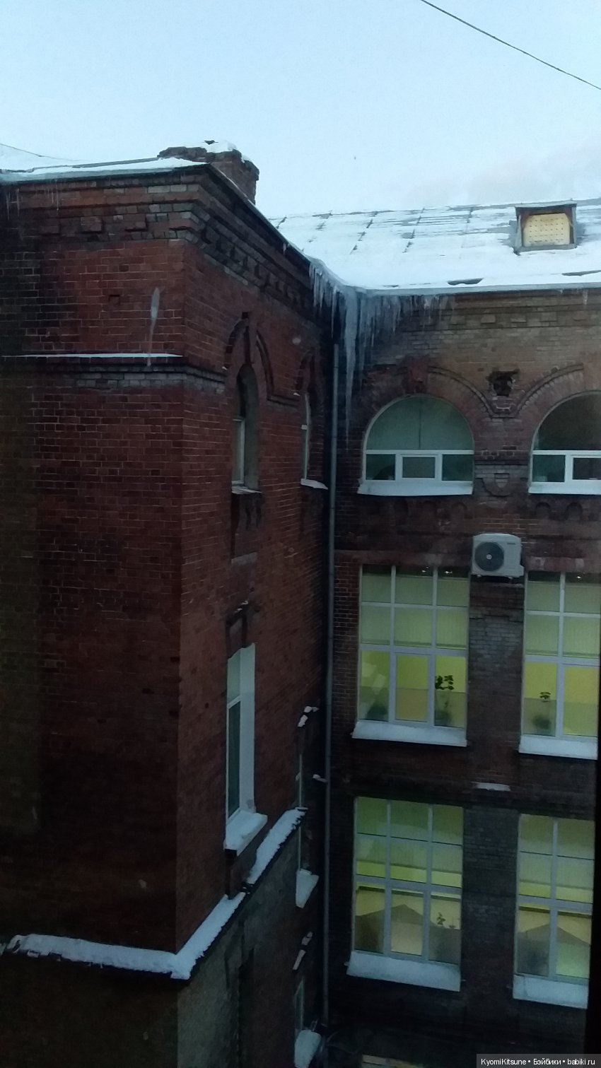 Думаю, наверно, тоже лучше напечатать вид из окна, а то там сперва шифер, потом вывеска на крыше, водосток, лестница на здании на другой стороне улицы… кукольная промзона выселяет людей (≧▽≦)